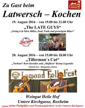 Wenn drei Tage lang der Duft von fruchtigem Zwetschgenmus durch die Roxheimer Untere Kirchgasse , aus alter Zeit auch Knüppelgasse genannt, zieht, ist klar: Der SPD Ortsverein kocht wieder nach alter Tradition Latwerch in den kupfernen Kesseln. In diesem Jahr waren es 700 kg Obst die aus einem rheinhessischen Obstgut den Weg nach Roxheim fanden um dort zum leckeren Brot-, Kuchen- oder sonstigem süßer Aufstrich verarbeitet zu werden. „Damit sind wir allerdings an unserer Kapazitätsgrenze angekommen,“ berichtete Ortsvereinsvorsitzender Michael Schaller, der als Gäste auch die MdL Dr. Denis Alt und Carsten Pörksen und den Kreisvorsitzenden Hans-Dirk Nies begrüßen durfte. Viele Stammkunden bringen bereits Tage vorher ihre Gefässe zum Füllen vorbei oder bestellen im Voraus - auch die leckeren Pflaumenkuchen aus der TuS Küche. Mit bald 15 Helferinnen und Helfern wurden die Früchte in 5 Stunden Arbeit von den Kernen befreit, dann in einem Fleischwolf grob zerkleinert und in die beiden großen, mit Holz beheizten Kessel gefüllt. Und dann gings ans Rühren. Zwischen 12 und 14 Stunden brauchte die gesamte Mannschaft, bis das Mus die nötige Konsistenz hatte – und das für jeden der insgesamt 6 Kessel die gekocht wurden. Stv. Vorsitzender Alfred Heil, in dessen Weingut die Aktion stattfand, schmeckte dann gemeinsam mit Frank Bellmann ab. „Noch einen halben Teelöffel Gewürz, das extra in einer Apotheke aus entspr. Zutaten zusammengestellt wurde, gehört hinein – oder vielleicht noch ein wenig Zucker?“ Die geheim gehaltene Gewürzzusammenstellung bringt schließlich noch den nötigen Pfiff – ohne den Zwetschgengeschmack zu überlagern , was ja für Kenner der "Latwerch-Szene" sehr wichtig ist. Zum Abschluss der Veranstaltung, bei der das Team des TuS 06 Roxheim um Vorsitzende Petra Braun wie immer für die Bewirtung der Gäste mit Kartoffelsuppe und Zwetschgenkuchen sorgte, wurden dann noch weitere Schmankerl geboten. Für das leibliche Wohl wurde in der Holzkiste leckerer Spieß- und Krustenbraten in 6 Liter Riesling gegart und den musikalischen Part übernahmen in diesem Jahr Ken “Majiken” Legendre , ein international aktiver Profimusiker. In der sehr gut gefüllten Straußwirtschaft Heil wurde bei „Moonshadow, Wild World, Lady D`Arbanville, The First Cut ist the Deepest oder Hotel California geschwoft. Etliche Zugaben mussten her ehe der musikalische Teil des Rahmenprogrammes , nicht ohne die bekannte "Hutsammlung" zur Musikerentlohnung beendet war. Vom Erlös wird wieder ein Teil an das Kreuznacher Frauenhaus gehen und den Roxheimer Kindergarten möchten die Roxheimer Genossen und Genossinnen mit 100 Liter naturtrübem Apfelsaft bedenken. Außerdem gilt es am Rastplatz „Bergblick“ wieder zu investieren. Und wer jetzt noch etwas von dem leckeren Mus haben möchte braucht sich nicht mehr zu sputen : Ausverkauft wurde schon am Jahrmarktsdienstag gemeldet!